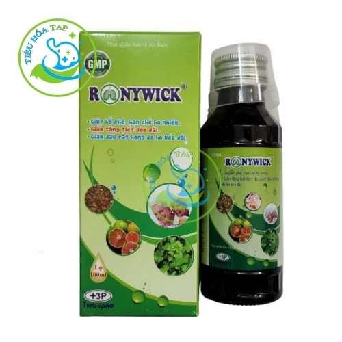 Ronywick là một sản phẩm hỗ trợ điều trị các triệu chứng ho do nhiều nguyên nhân khác nhau. Với các thành phần tự nhiên như cao lá thường xuân (Hedera helix), chanh đào, ô mai và kha tử, Ronywick giúp bổ phế, làm dịu cơn ho và giảm các triệu chứng khó chịu liên quan đến ho như ho gió, ho khan, ho do thay đổi thời tiết, ho lâu ngày không khỏi, hay ho do viêm họng. Sản phẩm này còn giúp cải thiện tình trạng khản tiếng, mang lại cảm giác dễ chịu và hỗ trợ quá trình phục hồi cho người sử dụng. Ronywick phù hợp với những người bị viêm họng, ho do cảm lạnh, hoặc những ai thường xuyên gặp phải các vấn đề về đường hô hấp do môi trường hoặc thay đổi thời tiết.